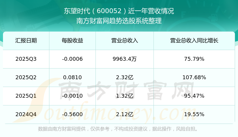 于2025年第三季度,東望時(shí)代披露了其業(yè)績(jī)表現(xiàn),其中主營(yíng)業(yè)務(wù)收入9963.4萬(wàn)元,相較于去年同期75.79%。此外,公司歸屬于母公司的凈利潤(rùn)為-46.92萬(wàn)元,同比增長(zhǎng)了90.74%。在扣除所有非經(jīng)常性損益后,凈利潤(rùn)-2495.37萬(wàn)元,同比增長(zhǎng)-12.15%。