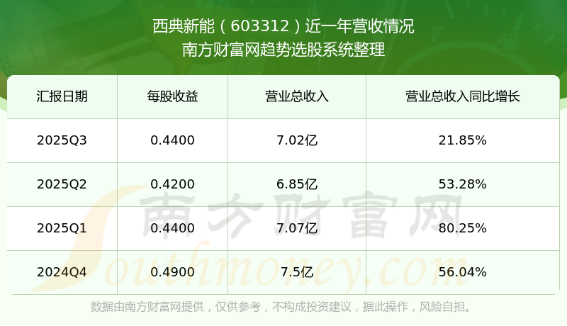 西典新能2025年第三季度財報顯示,公司主營收入7.02億元,同比21.85%;歸母凈利潤7183.75萬元,同比27.77%;扣非凈利潤7091.77萬元,同比27.81%;