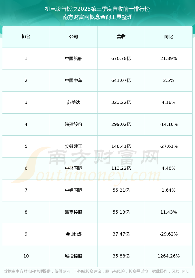 按照南方財富網(wǎng)概念查詢工具統(tǒng)計,該股所屬板塊為機(jī)電設(shè)備板塊,該板塊共有64只股票,西典新能2025第三季度營收在該板塊中排名為第64名,該板塊2025第三季度營收排名前十的股票如下表: