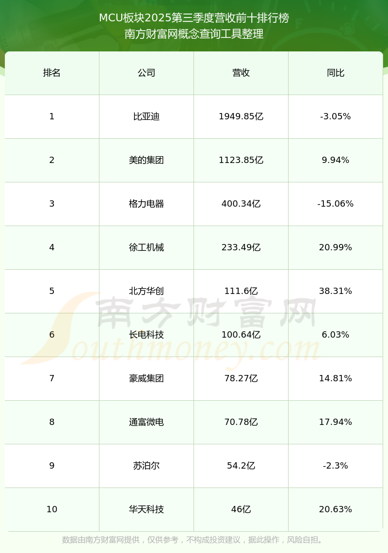按照南方財富網(wǎng)概念查詢工具統(tǒng)計,該股所屬板塊為MCU板塊,該板塊共有68只股票,峰岹科技2025第三季度營收在該板塊中排名為第59名,該板塊2025第三季度營收排名前十的股票如下表: