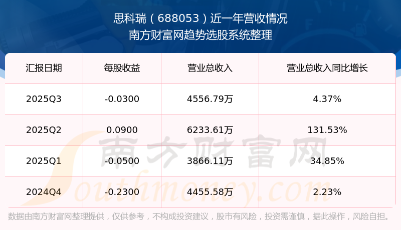 思科瑞(688053)披露2025年第三季度報(bào)告,報(bào)告期實(shí)現(xiàn)營(yíng)收4556.79萬元,同比4.37%;歸母凈利潤(rùn)-277.04萬元,同比-166.22%;扣非凈利潤(rùn)-354.38萬元,同比-190.73%。