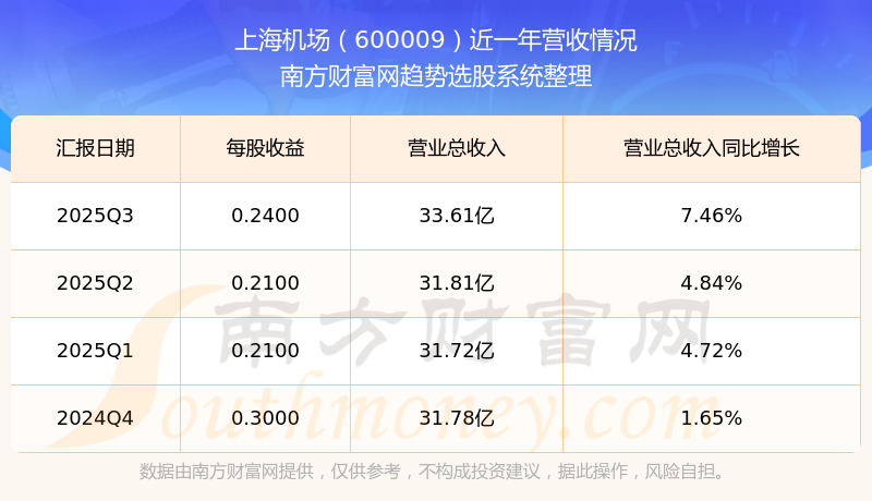 上海機(jī)場(chǎng)2025年第三季度財(cái)報(bào)顯示,公司主營(yíng)收入33.61億元,同比7.46%;歸母凈利潤(rùn)5.9億元,同比52.52%;扣非凈利潤(rùn)5.82億元,同比55.15%。