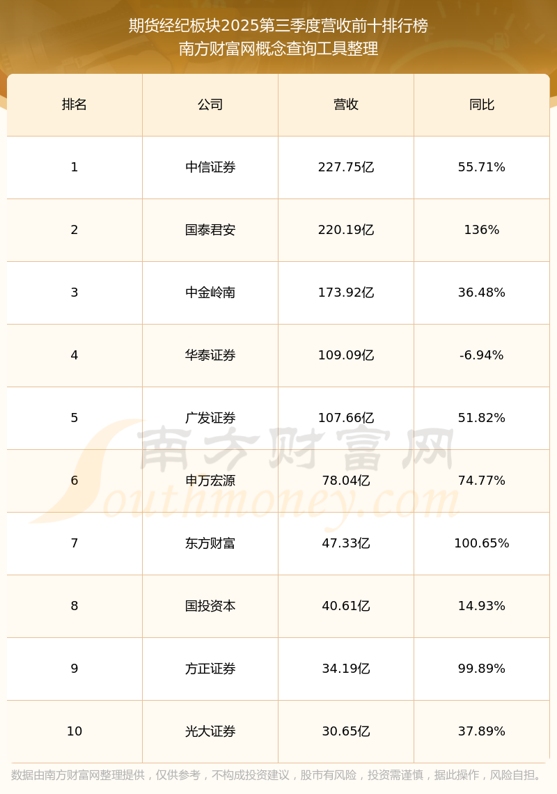 按照南方財(cái)富網(wǎng)概念查詢(xún)工具統(tǒng)計(jì),該股所屬板塊為期貨經(jīng)紀(jì)板塊,該板塊共有25只股票,永安期貨2025第三季度營(yíng)收在該板塊中排名為第11名,該板塊2025第三季度營(yíng)收排名前十的股票如下表: