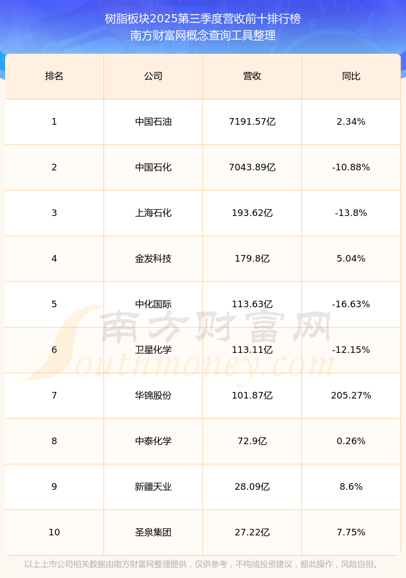 按照南方財(cái)富網(wǎng)概念查詢工具統(tǒng)計(jì),該股所屬板塊為樹脂板塊,該板塊共有33只股票,中國電研2025第三季度營收在該板塊中排名為第33名,該板塊2025第三季度營收排名前十的股票如下表: