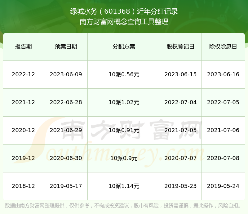 綠城水務(wù)最新一次公布的分紅方案:10派0.56元。
