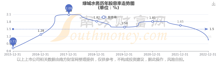 近年綠城水務(wù)年度股息率走勢(shì)如下圖: