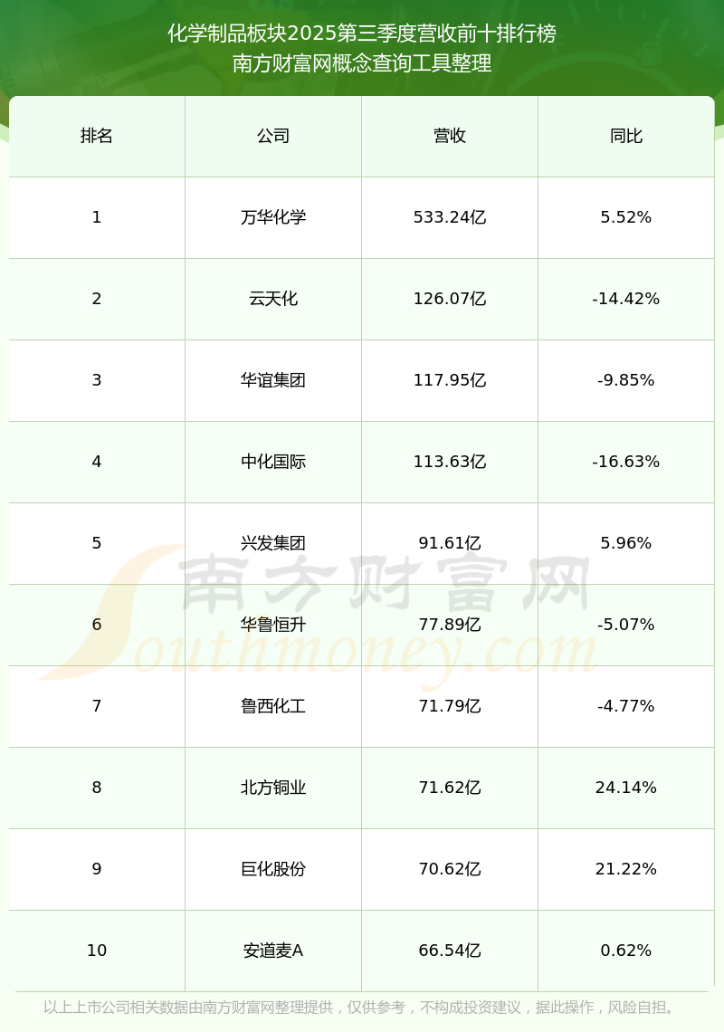 按照南方財(cái)富網(wǎng)概念查詢工具統(tǒng)計(jì),該股所屬板塊為化學(xué)制品板塊,該板塊共有226只股票,嘉化能源2025第三季度營(yíng)收在該板塊中排名為第23名,該板塊2025第三季度營(yíng)收排名前十的股票如下表: