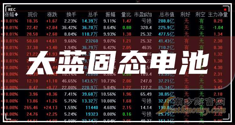 太藍(lán)固態(tài)電池概念股龍頭有哪些?據(jù)南方財(cái)富網(wǎng)概念查詢工具數(shù)據(jù)顯示,太藍(lán)固態(tài)電池龍頭有: