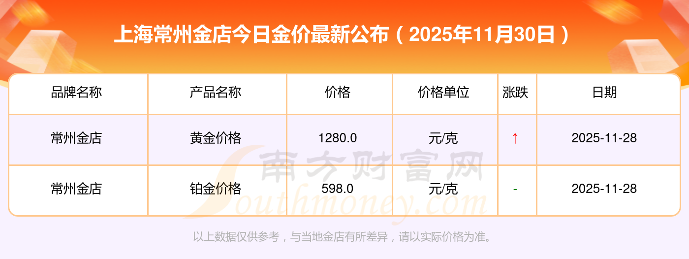 上海常州金店黃金價格今天多少錢一克?今天上海常州金店黃金價格匯總(2025-11-30)
