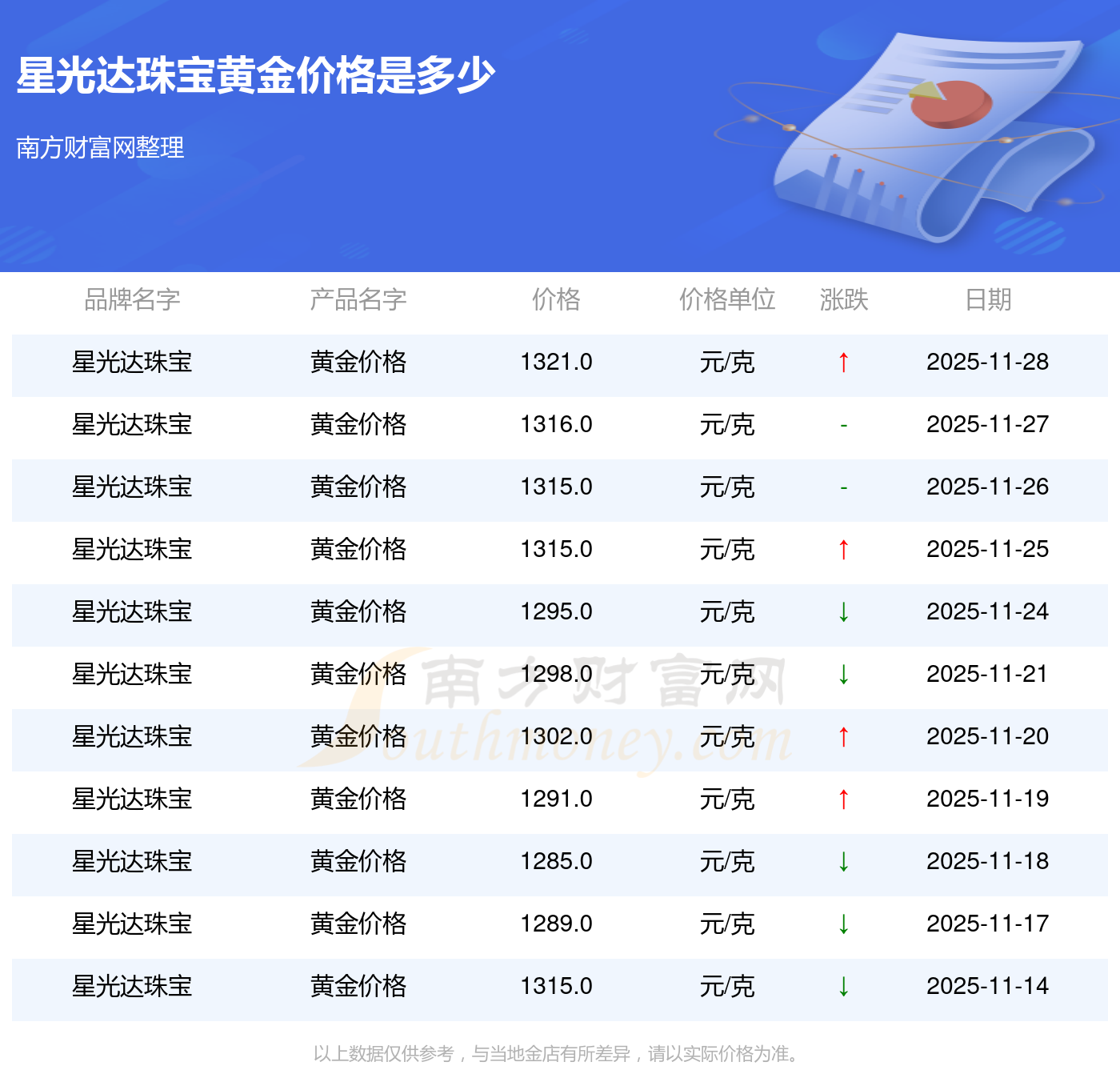 2025年11月30日星光達(dá)珠寶今日黃金價格最新公布 (星光達(dá)珠寶今日黃金價格多少一克)