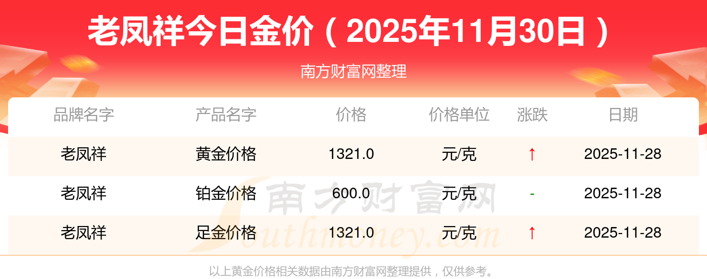 老鳳祥黃金多少錢一克?老鳳祥金價(jià)今日價(jià)格查詢(2025年11月30日)