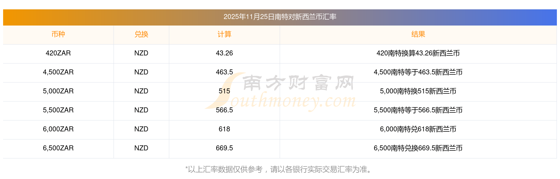 今天南特與新西蘭幣賣(mài)出價(jià)多少(2025年11月25日)