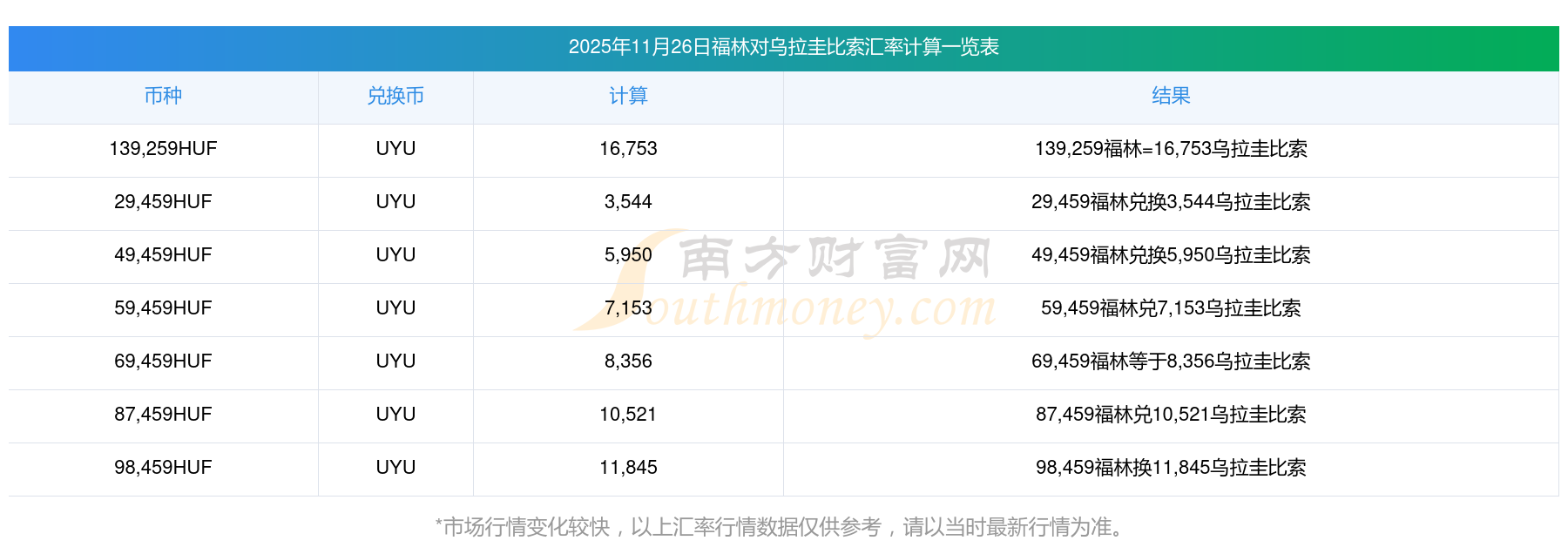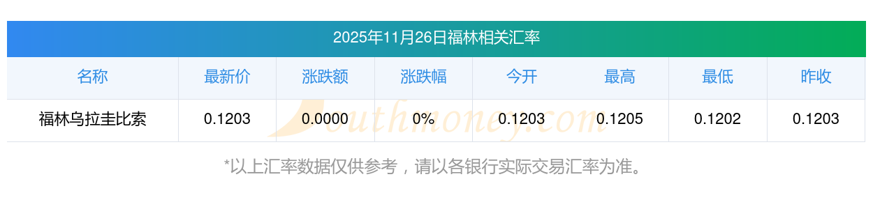 今日11月26日福林兌換烏拉圭比索最新匯率多少?