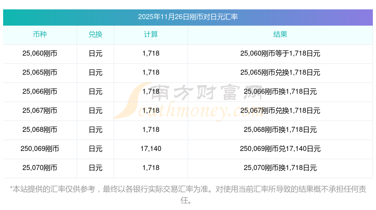 南方財富網(wǎng)為您提供剛幣對日元匯率最新價格詳情。