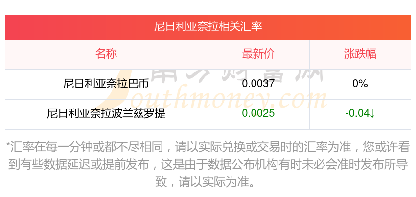 2025年11月26日最新消息,尼日利亞奈拉兌換波蘭茲羅提最新匯率為0.002517,今開為0.0025,昨收為0.0025,最高為0.0025,最低為0.0025。