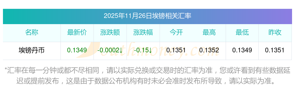 2025年11月26日埃鎊相關(guān)匯率查詢